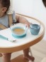 Ensemble de vaisselle en verre pour enfant pour proposer les premiers repas sains pour bébé. Comprend : une assiette, un bol, un gobelet en verre à ventouse.