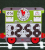 Dès 12 mois. Panneau mural avec une forme de wagon et fonction horloge.