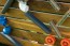 De l'autre côté du panneau, des crochets et une étagère permettent de ranger les seaux, pelles et accessoires.