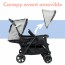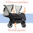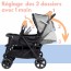 Pratique et maniable, cette poussette convient pour les enfants d’âges rapprochés. Comprend : • 2 tabliers de protecion • 1 habillage pluie intégrale en pvc avec aération • 2 canopy dont 1 amovible, l’autre avec rangement et hublot • 2 harnais 5 points avec protecteur de sangles • 1 grand panier de rangement • 1 assise arrière transformable et évolutive. La poussette est équipée de suspensions intégrales et d’un pliage au guidon avec double sécurité au pied. Dim. ouverte : L. 113 cm - l. 54 cm - Ht. 105 cm Dim. pliée : L. 94 cm - l. 54 cm - Ht. 48 cm. Poids 14,4 kg Lire plus