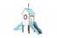 Structure pour aire de jeux à sceller au sol pour 7 enfants environ. Comprend : 1 tour avec toit, 1 escalier, 1 mur à grimper, 1 glissière. Lire plus