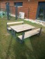 Position haute : Hauteur plateau 52 cm, assises hauteur 30 cm.