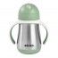 Tasse inox à paille idéale pour l'apprentissage grâce à sa paille intégrée. L'ouverture facile avec son clapet coulissant permet de libérer la paille aisément. Ouverte ou fermée, cette tasse est parfaitement étanche grâce à sa valve et à son clapet.
