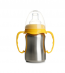 Tasse inox avec anses favorisant la transition et l'autonomie chez l'enfant. La forme ergonomique des poignées favorisent la préhension.